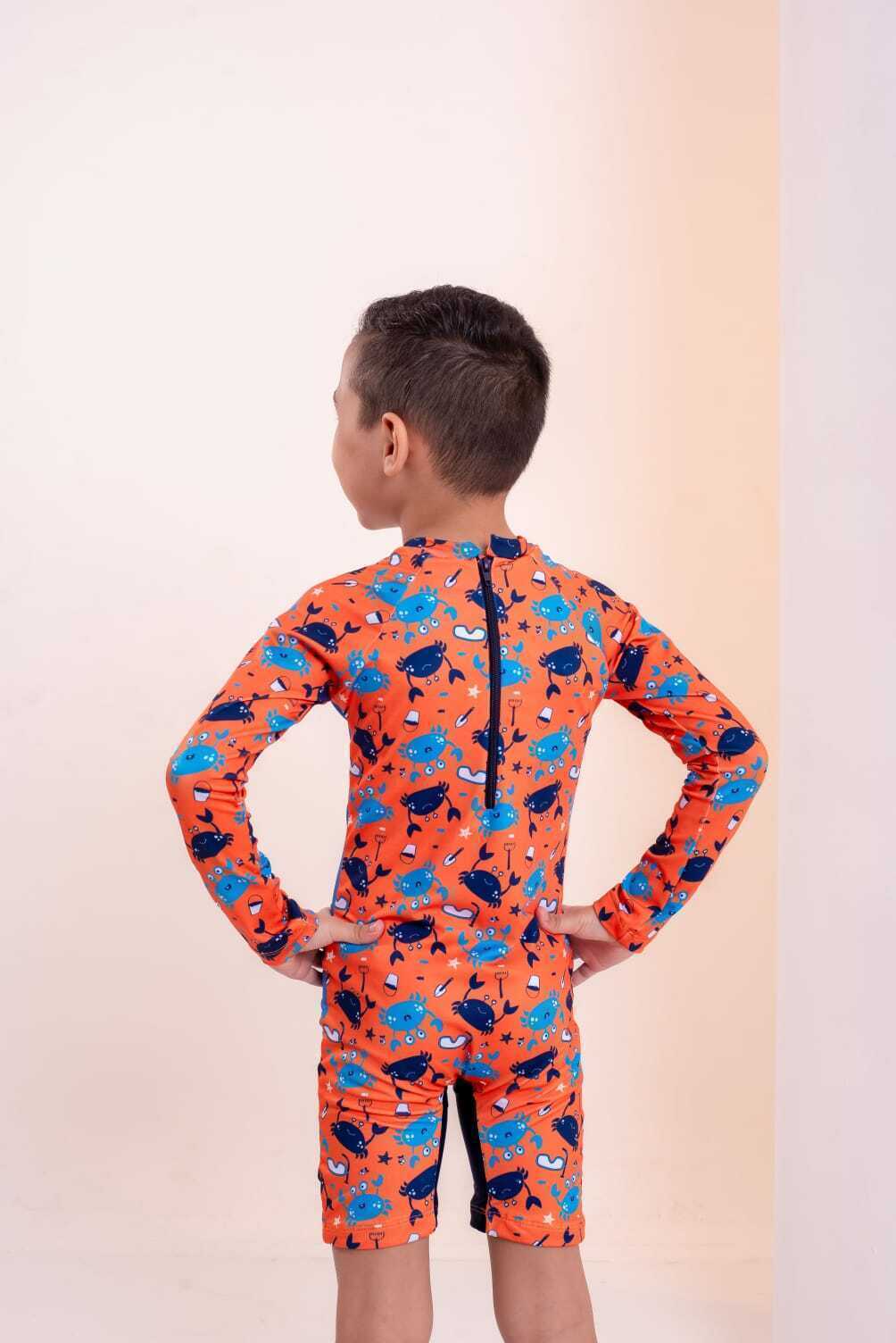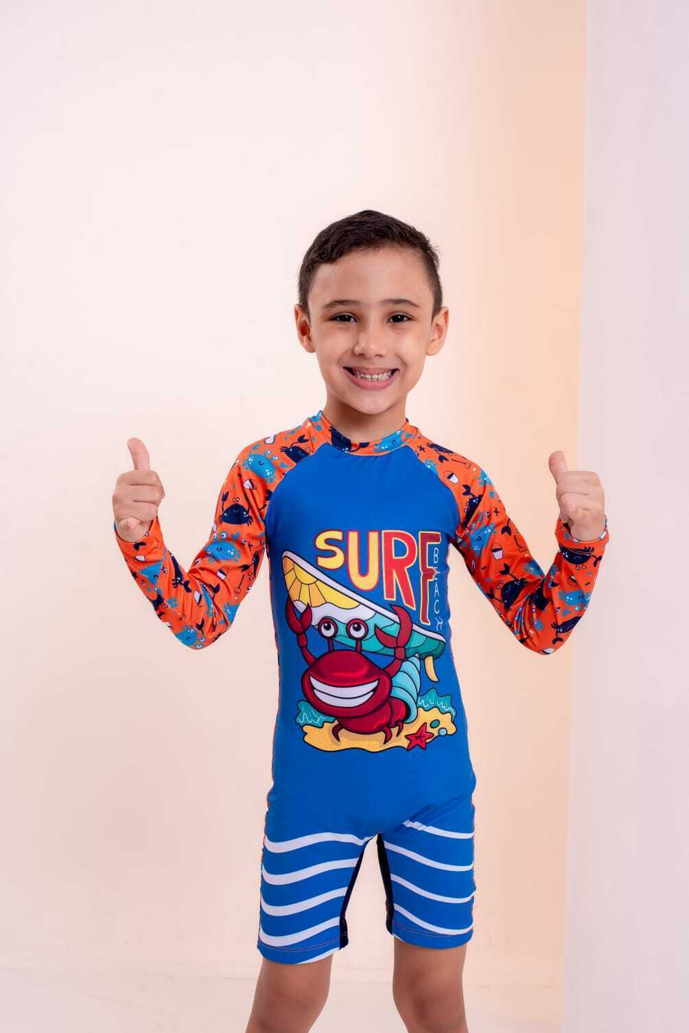 O macacão foi elaborados pensando no conforto das crianças. Confeccionado em 83% poliamida e 17% elastano, tecido leve, fresco, não esquenta, fácil de vestir com zíper nas costas e se adapta perfeitamente ao corpo da criança. Ele é todo forrado. Com dupla proteção solar, com nível de bloqueio superior a 98%.